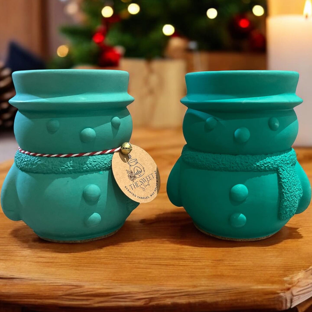 Celebrate sustainably with our handcrafted Snowman Candles in charming red (Apple & Cinnamon) and green (Mulled Wine) scents. Each 220ml candle is made with 100% natural soy wax in unique concrete jars. Each candle jar is individually hand poured. Due to the handcrafted nature of our vessels, air bubbles or uneven colour may be present. Bring the warmth and magic of the season to your space with these festive candles - perfect for gifts or holiday decor!