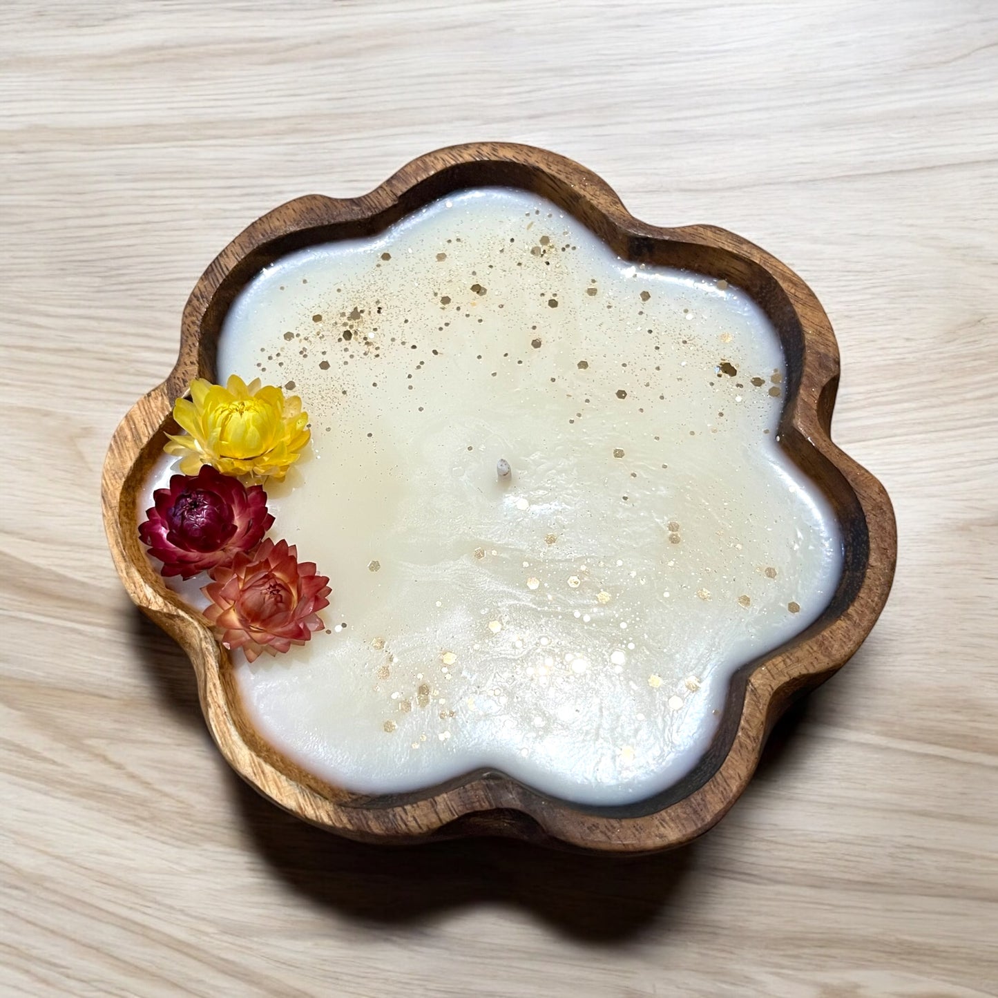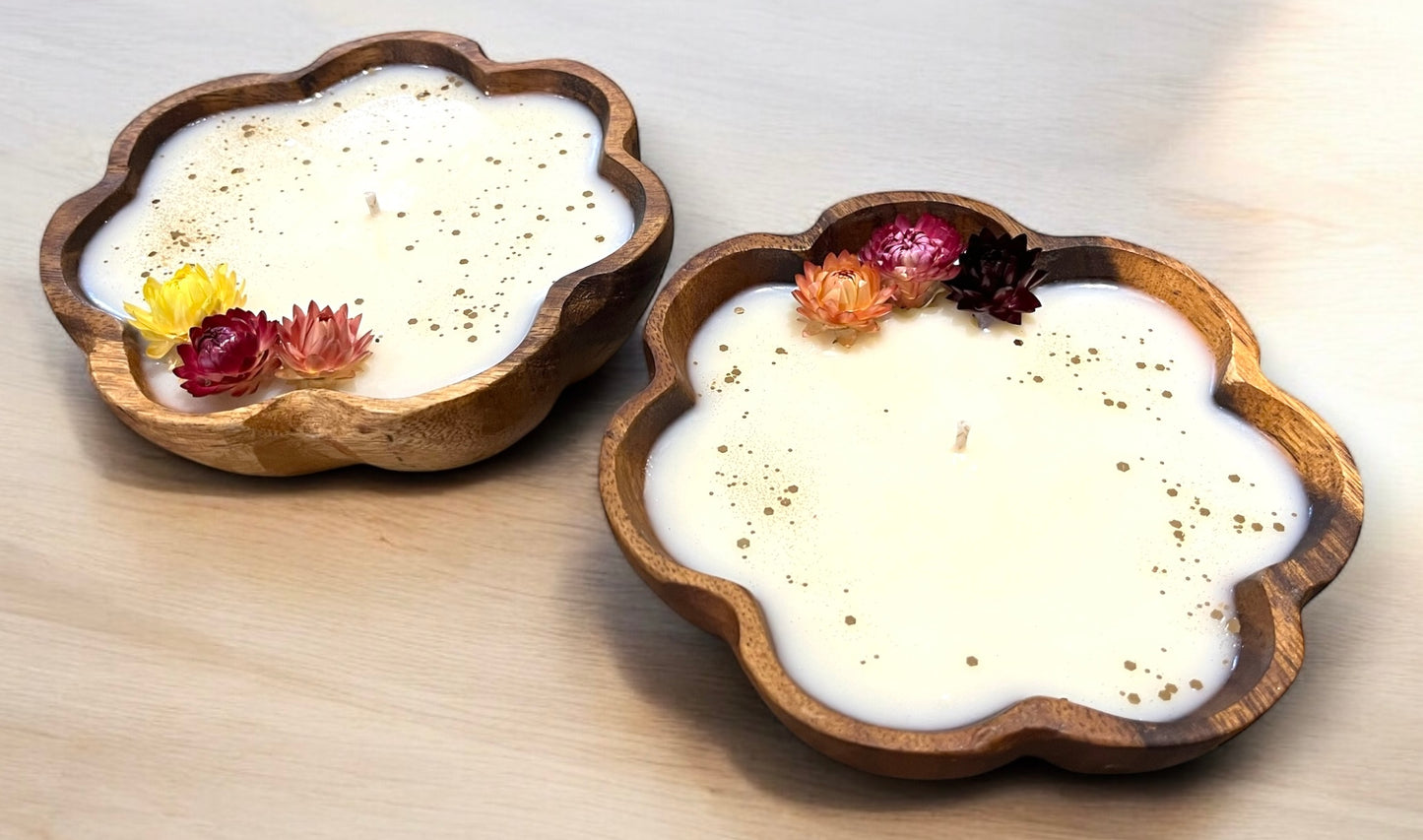 Elevate your space with the timeless elegance of our handcrafted Acacia Flare Candle. Expertly carved from exquisite Acacia wood and filled with 270ml of premium, 100% natural soy wax, this statement piece is infused with the rich, sophisticated scent of Cranberry Crush — a fragrance that perfectly balances tart fruitiness with subtle warmth. Finished with a delicate arrangement of organic dried flowers, it’s a luxurious addition to any interior, designed to create an inviting and serene ambiance.