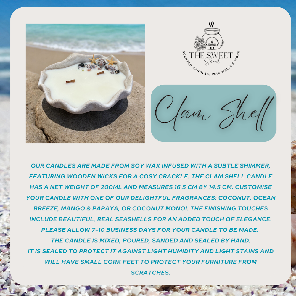 Elevate your ambiance with our custom-made seashell Candles & trays. Our candles are Crafted with cruelty-free scents and Soy wax, each candle is meticulously hand-poured to order, ensuring a unique experience for every customer.