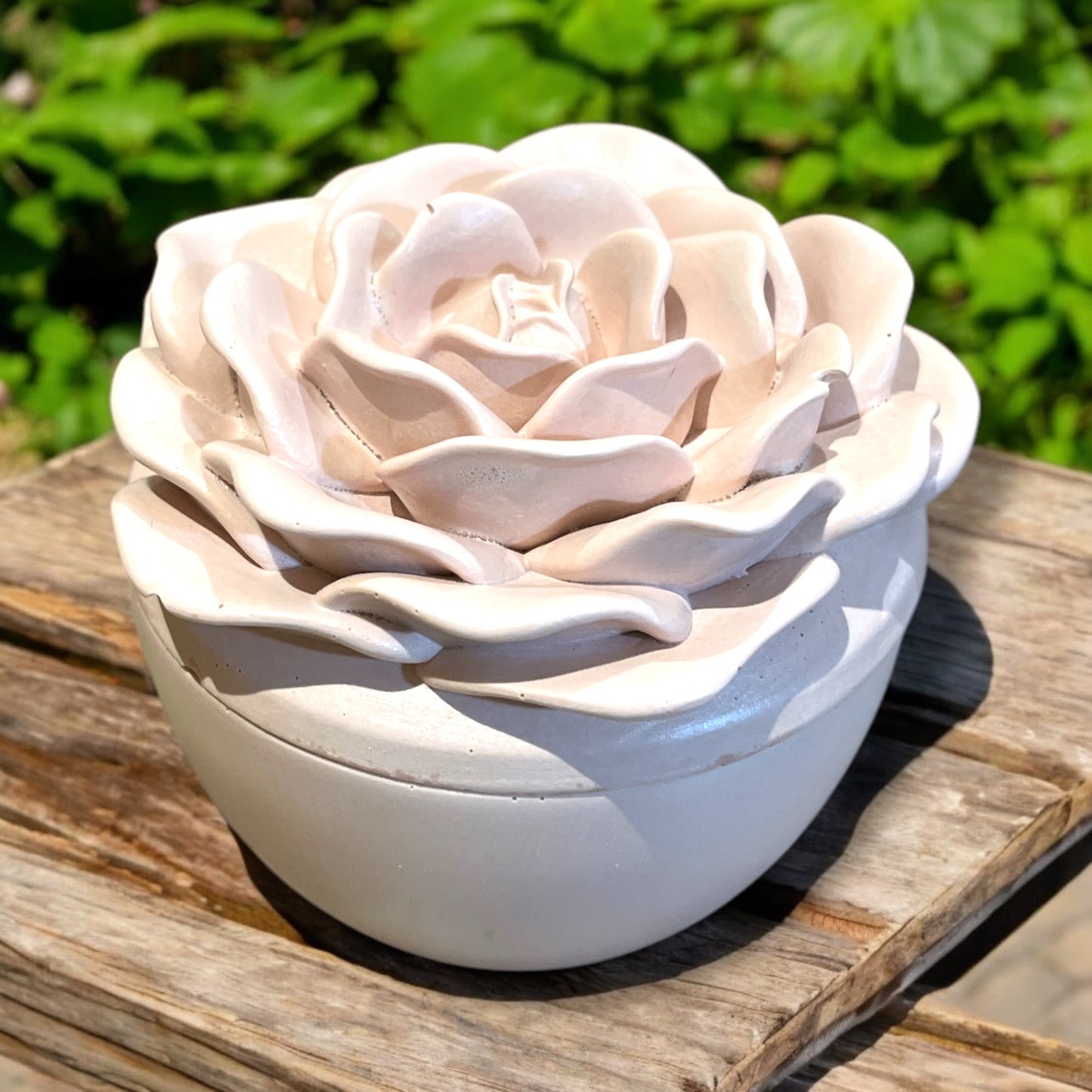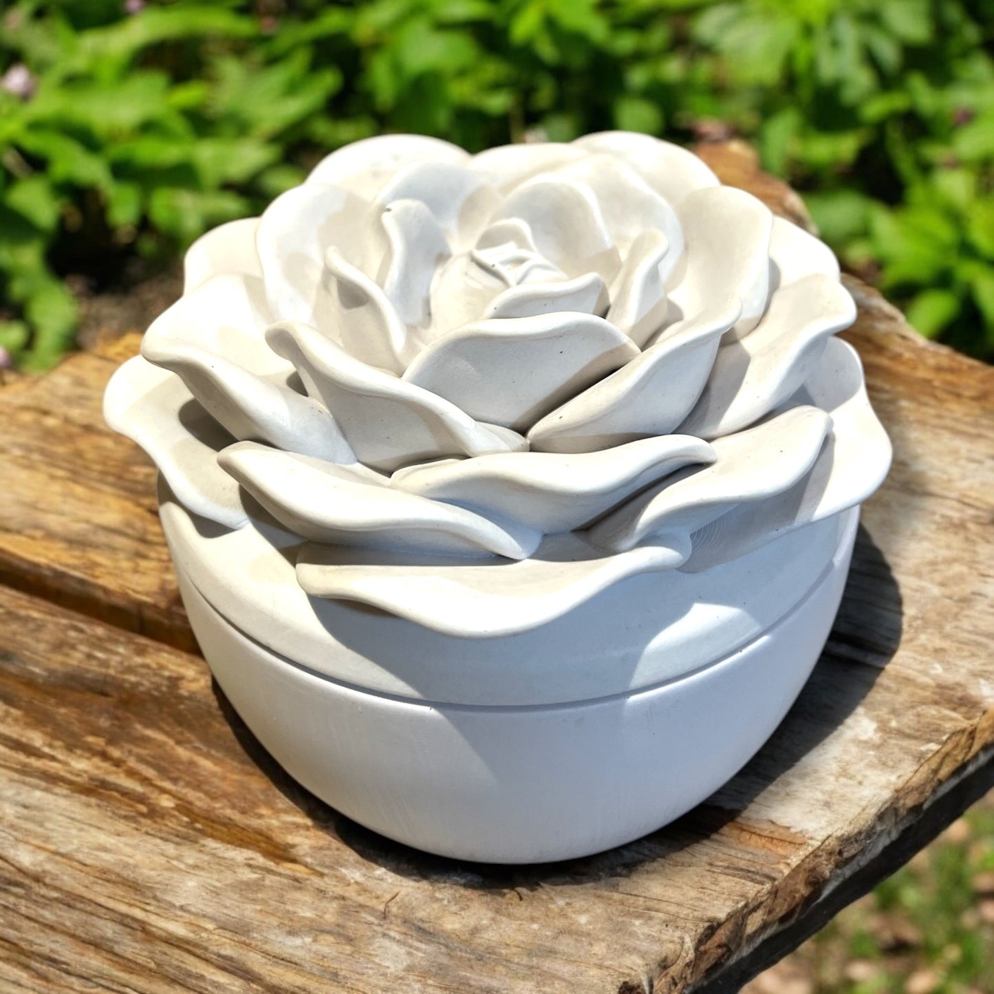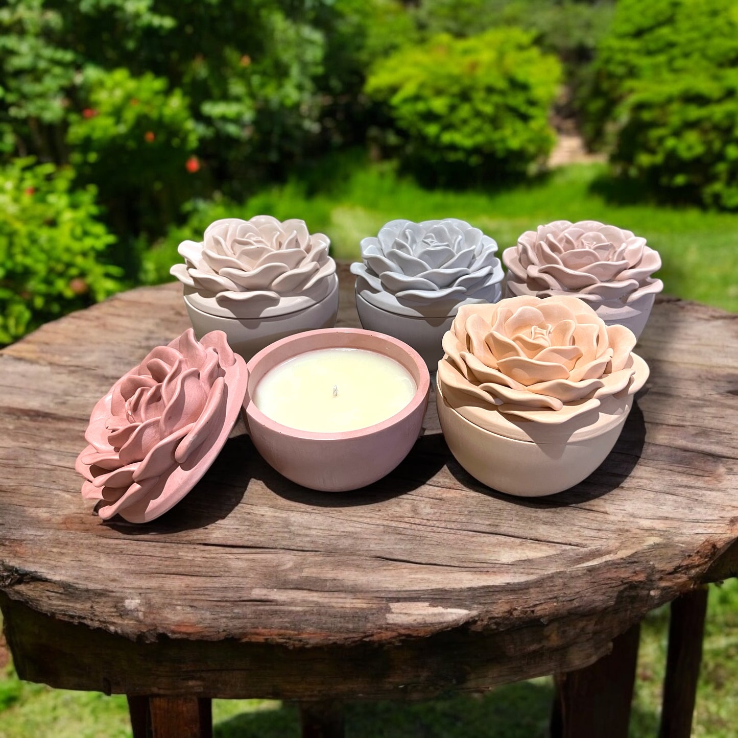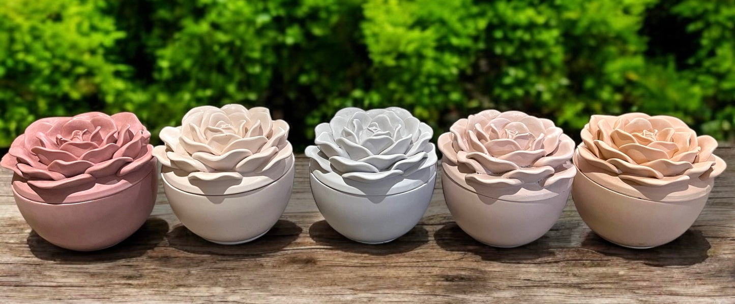 Our 200ML Crowning Rose Candle is elegantly set in a beautifully handcrafted sustainable concrete jar, shaped like a crowning rose. Infused with the luxurious blend of Velvet Rose & Oud, this scent offers a rich, floral warmth with a hint of smoky sophistication. Made with 100% natural soy wax, it’s vegan, biodegradable, and thoughtfully created for both you and the planet. Each artisanal jar is unique, with natural air bubbles or subtle color variations that enhance its handcrafted charm.