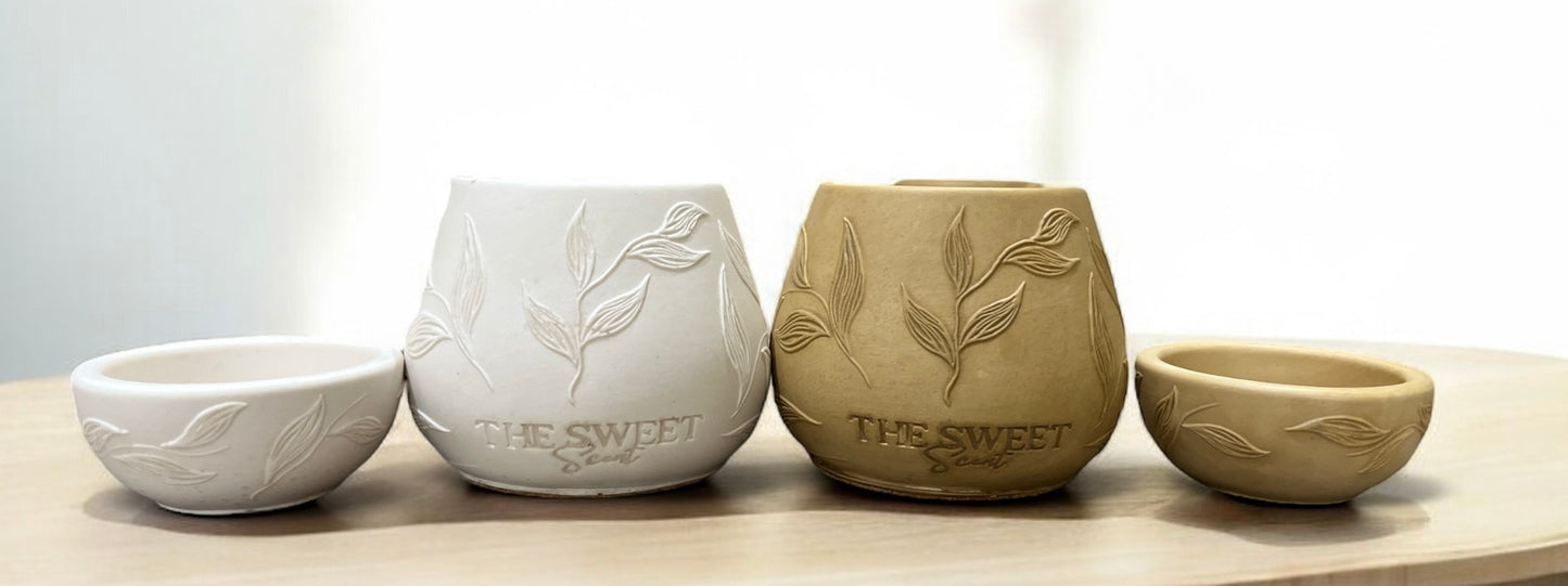 Elevate your ambiance with our Signature Tealight Candle Burner — a timeless piece crafted from sustainable concrete and finished with delicate leaf detailing and our iconic logo. Designed with a minimalist aesthetic in mind, it’s available in two soft neutral tones: off-white and beige, making it a subtle yet striking addition to any space.