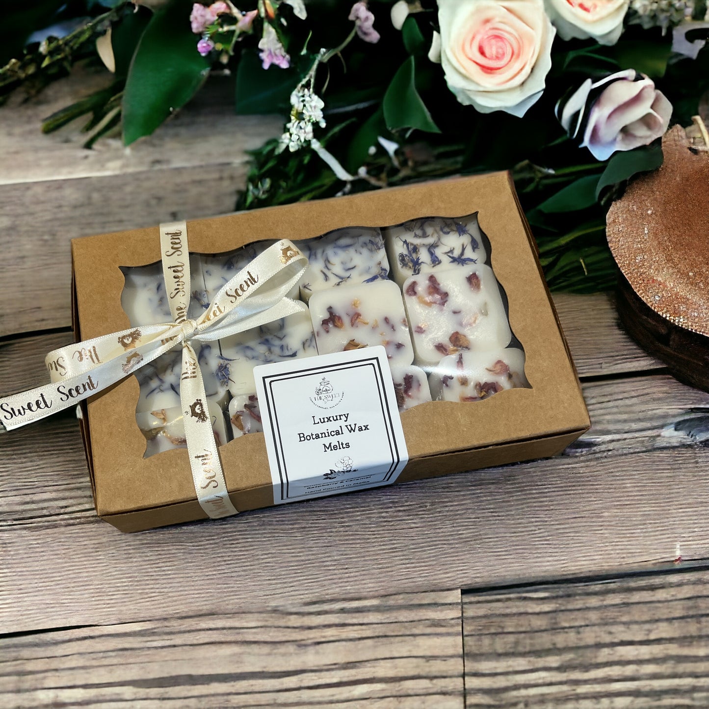 Our Luxury & Botanical Wax Melts are uniquely created with natural and organic ingredients for that perfect candle burn. This wax melts pack comes in a set of 2 scents: White Musk & Lavender and Raspberry & Caramel. Net Wt. Of approx 240grams. Can be purchased with our gift packages or can be purchased alone.
