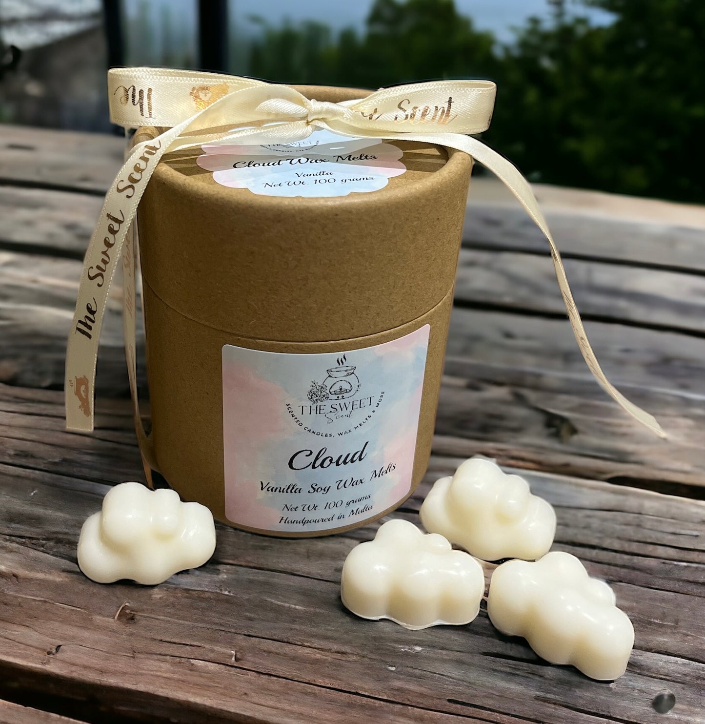 Our Vanilla Cloud Wax Melts are made from 100% soy wax and high quality vegan friendly, cruelty-free and paraben-free vanilla fragrance oil. Enjoy the room filled with vanilla aroma in minutes and will last for hours. Wax melts can be re-used untul the fragrance is fully gone. Packed in biodegradable and free from chemical coatings sturdy kraft paper tube to help reducing its footprint on the environment. Each tube contains 100g of vanilla scented wax melts. All of our wax melts are handpoured in Malta. Only to be used with warmers and never leave burning warmer unattended.